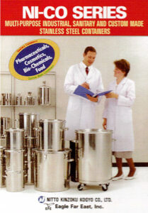 We have been manufacturing and selling stainless steel containers in Japan since 1957. Our business range is centered on the manufacture and sale of stainless steel containers used in the pharmaceutical industry, as well as a wide range of fields including cosmetics, foods, chemicals, semiconductors and more.